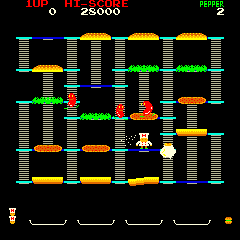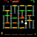 | בורגר טיים, דאטה איסט 1982 עזרו לשף להימלט מהחביתה והחמוצים ולהכין את ההמבורגרים שרק מחכים ליפול לצלחות למטה. משחק אידיוטי אבל אחד הגדולים. |