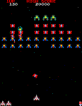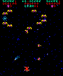 | גלקסיאן, נאמקו 1979 הפיתוח הראשון האמיתי של ספייס אינביידרס - הגרפיקה צבעונית ומרשימה ועכשיו החייזרים תוקפים ישר במקום להתקדם צעד צעד. |