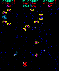 | גאלאגה, נאמקו 1981 משחק ההמשך של גלקסיאן שהציג שיפורים בגרפיקה ובצליל. |